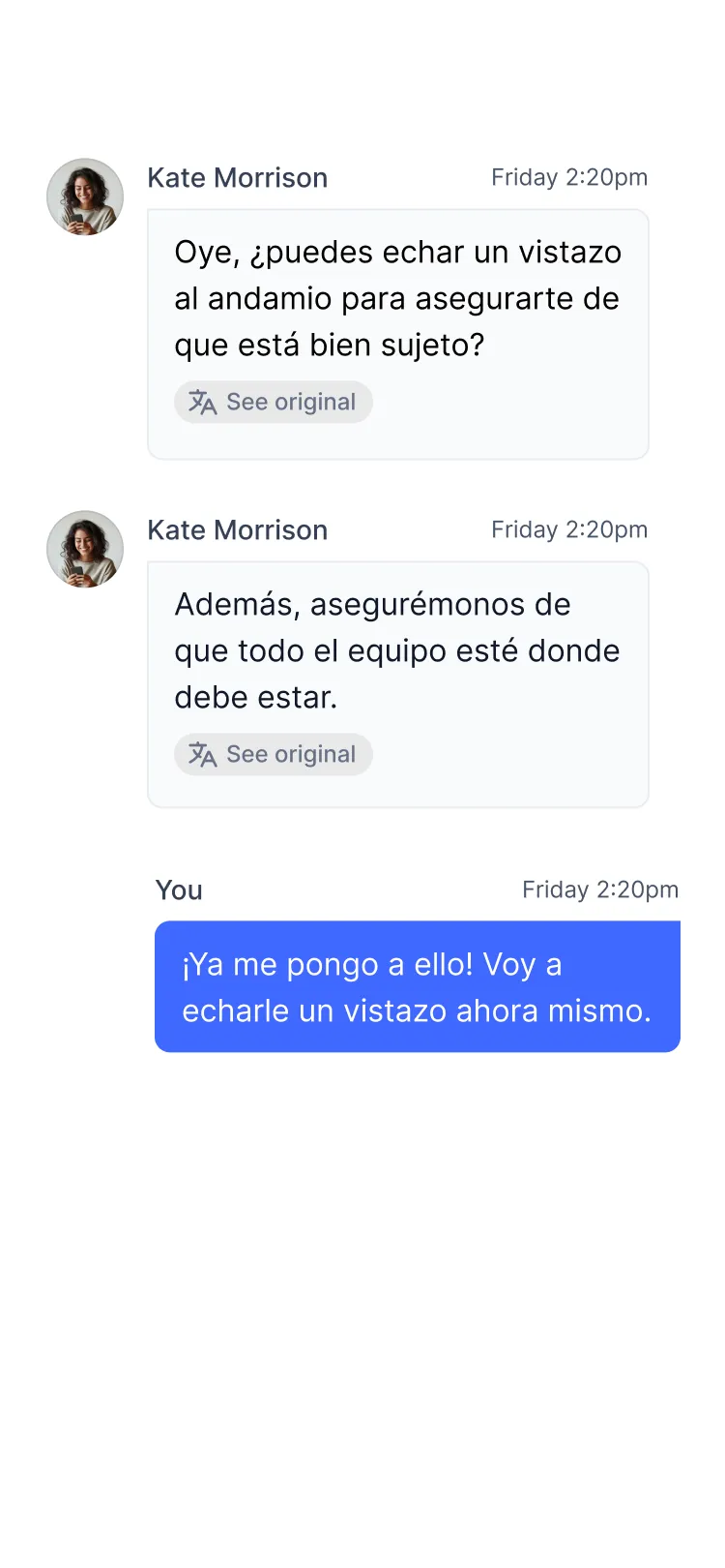 If a significant part of your frontline speaks multiple languages, Speakap's built-in automatic translation feature makes sure critical updates are understood by everyone. Because a safety message only works if it can be read.